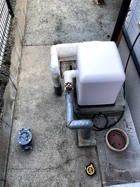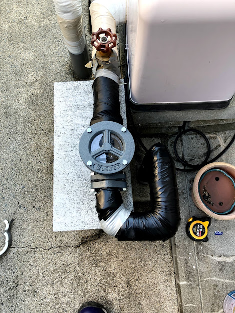 水漏れがないか確認し、無ければ保温材を巻いて完成です。