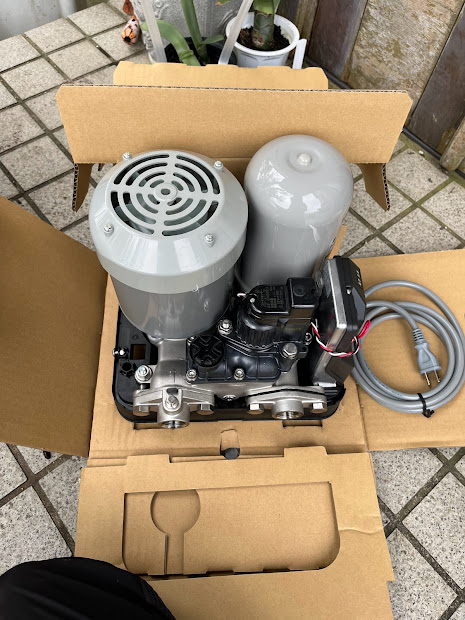 今回採用するポンプはこちら、150W浅井戸ポンプ。