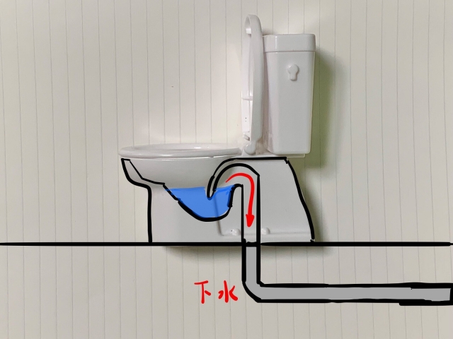 便器の奥は、S字状にカーブしています。